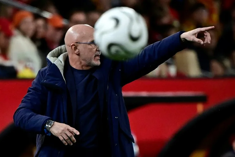 El seleccionador de España, Luis de la Fuente, en el partido contra Países Bajos en los cuartos de final de la Liga de Naciones en Mestalla, el 25 de marzo de 2025 (JOSE JORDAN) (JOSE JORDAN/AFP/AFP)