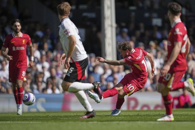 Se trató del cuarto gol que el pampeano Mac Allister anota en la temporada de la Premier League. Claro que, lamentablemente para Liverpool, la alegría no duró demasiado. Curiosamente, Fulham reaccionó y se fue al descanso 3-1 arriba, por los goles del británico Ryan Sessegnon (diez minutos después del grito del argentino), el nigeriano Alex Iwobi (32′) y el brasileño Rodrigo Muñiz (37′).
