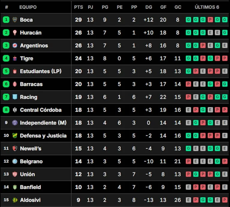 Posiciones del Torneo Apertura 2025: así quedaron las tablas en la fecha 13