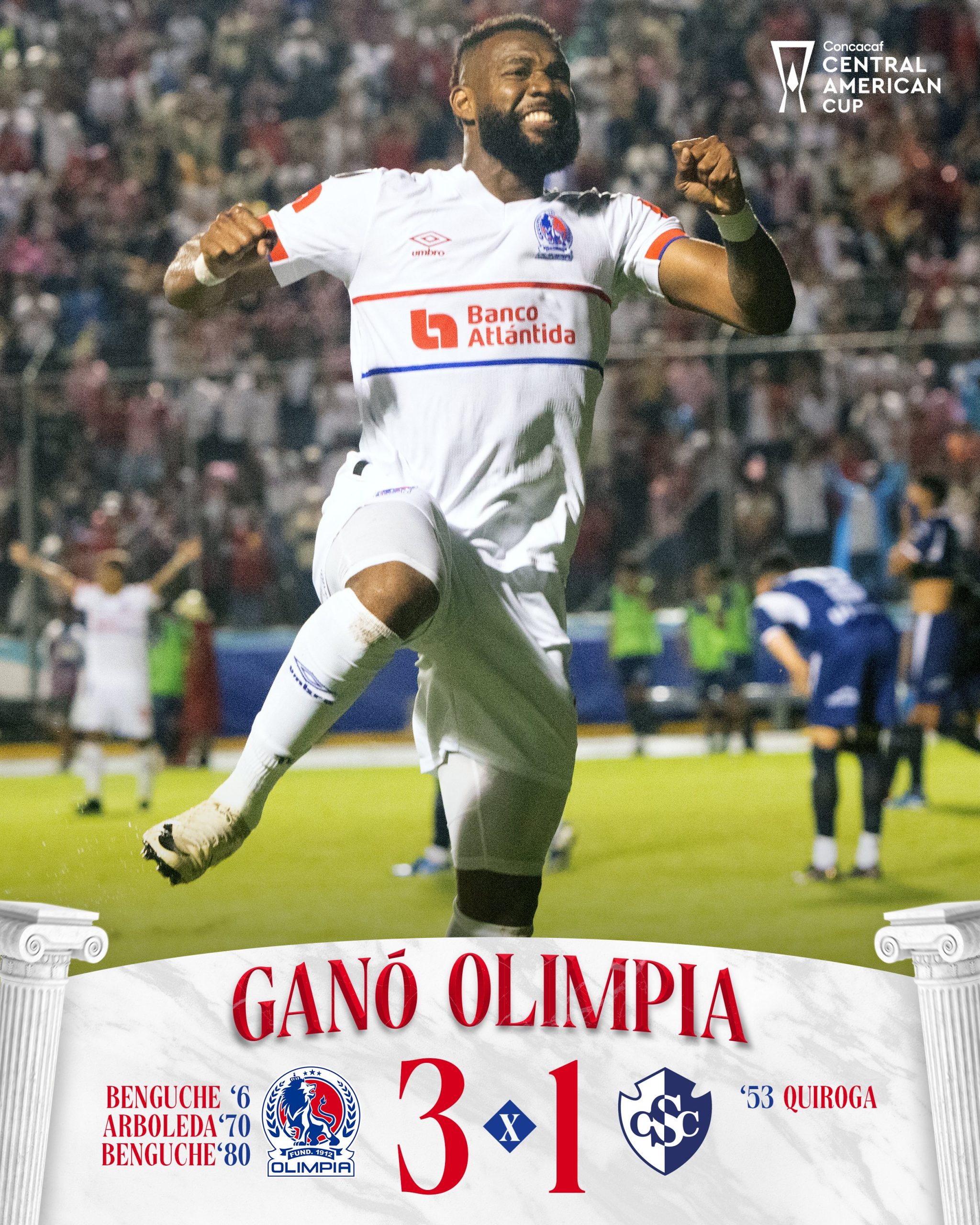 Olimpia llegó al partido de vuelta con una ventaja de 2-1 conseguida en la ida en Cartago, Costa Rica, gracias a goles de Michaell Chirinos y Jorge Benguché. En el duelo decisivo, los “Leones” no dieron tregua ante más de 20,000 aficionados en el Chelato Uclés, asegurando la clasificación con un rendimiento sólido liderado por Benguché y Yustin Arboleda.